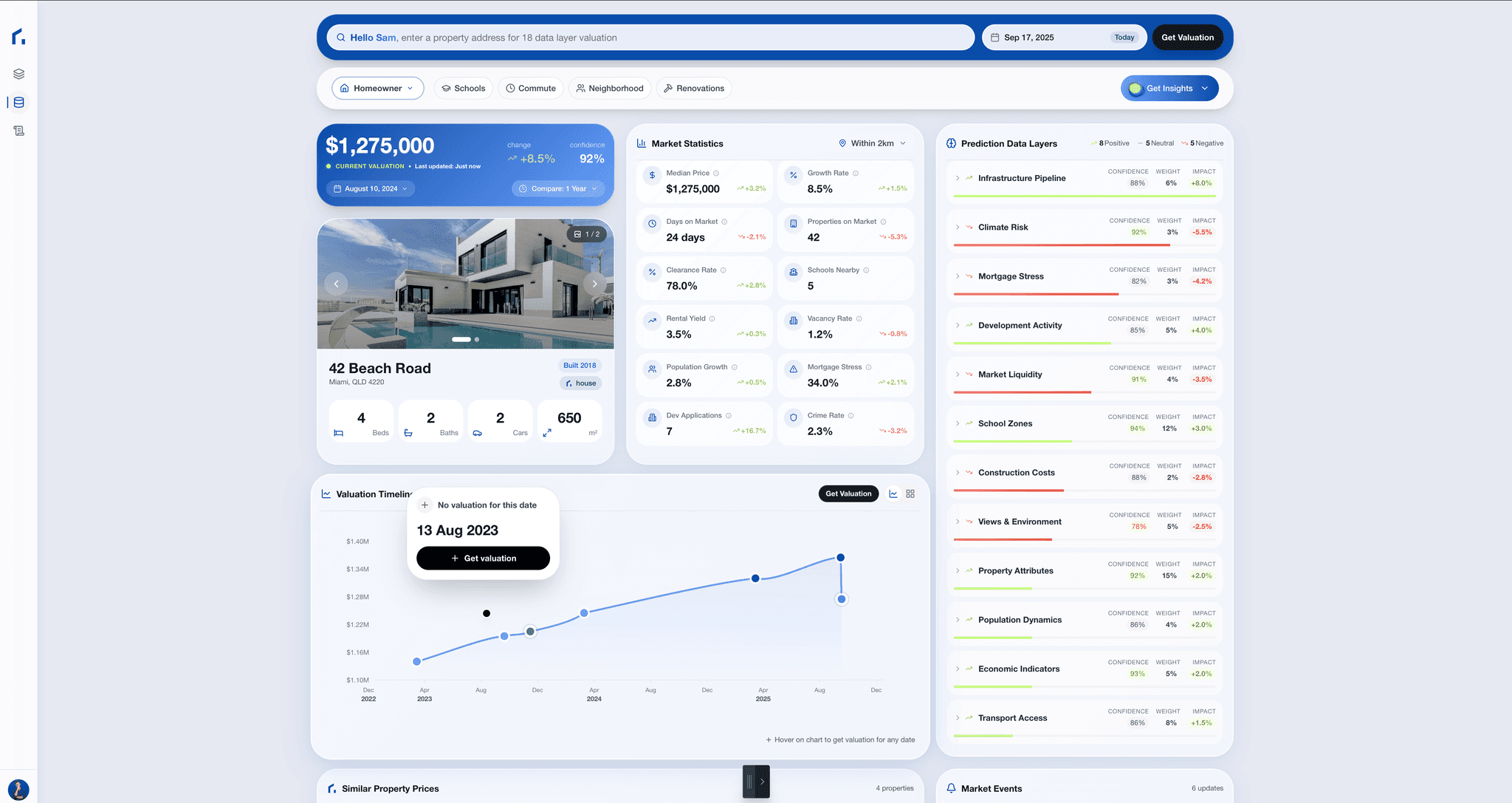 revalu.ai delivers accurate property predictions by layering verified data, speculative signals, and macro trends into one intuitive platform in real time.